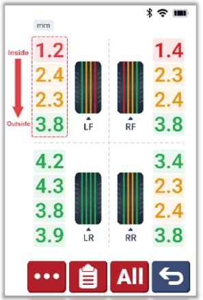 Launch Mönsterdjupsmätare är ett avancerat handhållet däckinspektionsverktyg med 3,97tum skärm som mäter180mm över däckets bredd.