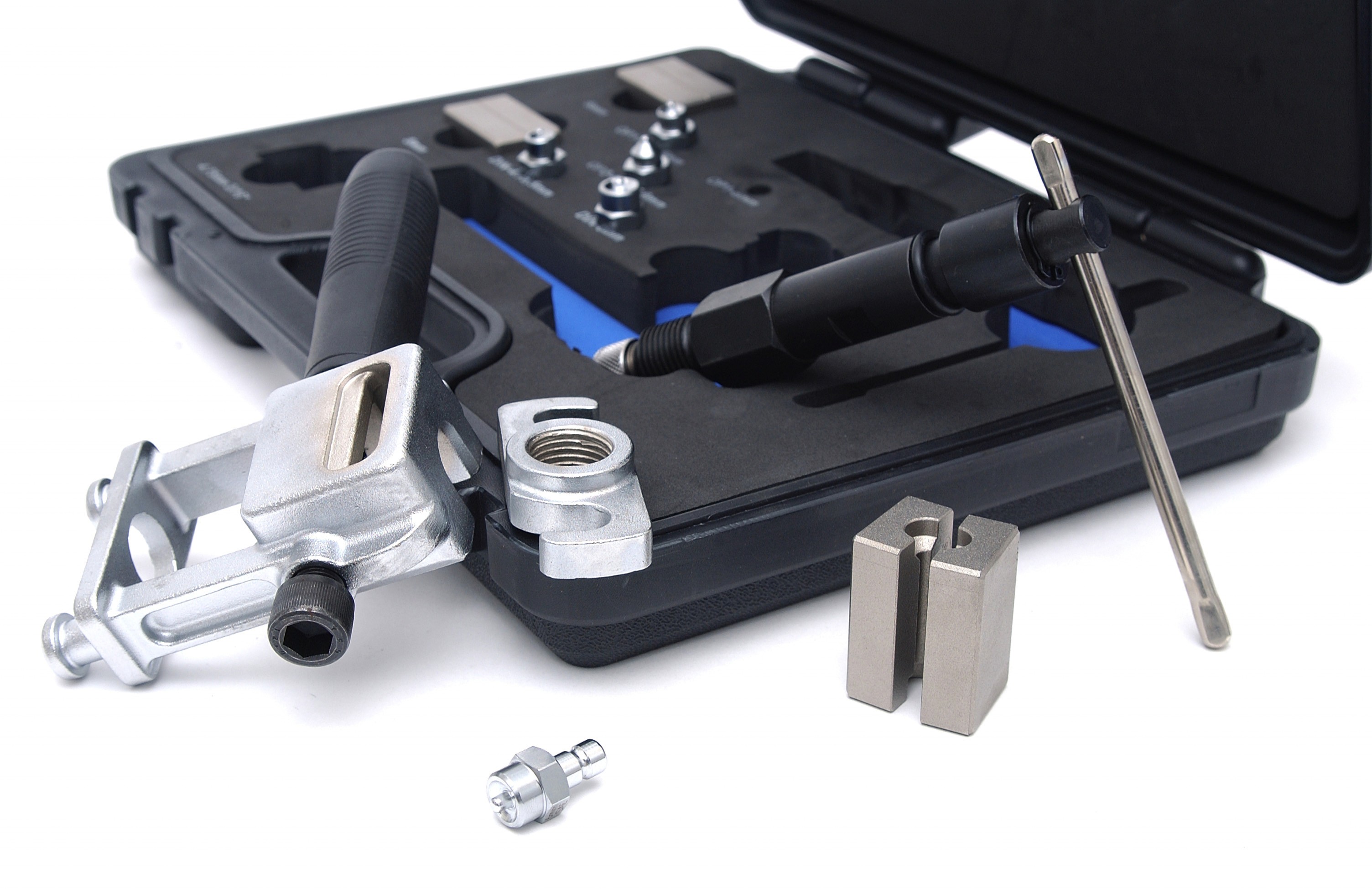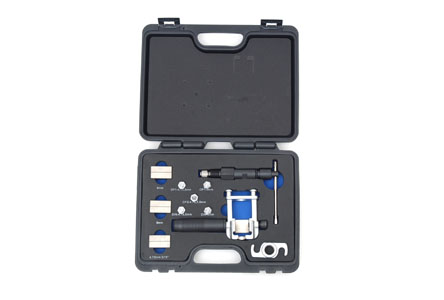 Smidigt verktyg för koning av bromsrör direkt på fordonet. Hydrauliskt koningsverktyg för extra kraft. För SAE eller DIN, enkel och dubbel koning. Komplett sats innehållande verktyg, stansar och spännbackar för både stål och kopparrör 3/16", 4.75, 5.0, 6.0 mm.